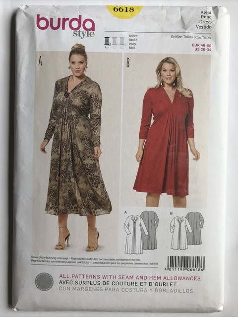 Burda Style Sewing Pattern 6618 Womens Plus Size Dress Sz 20 34 Uncut For Sale Online Ebay